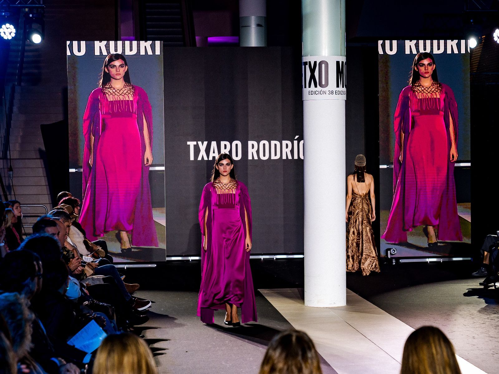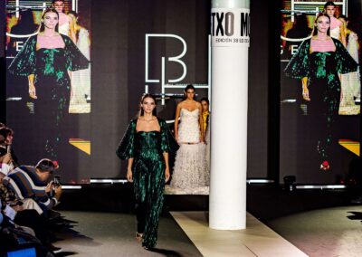 El pase de Txaro destacó por una propuesta llena de color, donde las transparencias y los cortes artesanales marcaron el ritmo del desfile. Su trabajo mostró la técnica y el cuidado con los que la diseñadora aborda cada prenda: telas seleccionadas por su carácter, tratadas con precisión y rematadas para garantizar que la armonía se mantenga tanto en la forma individual como en el conjunto. Esa fidelidad al detalle recordó al público que cada pieza se construye desde la coherencia y el respeto al material, abordado desde una visión rompedora, el mismo enfoque que aplica a diario en su taller.